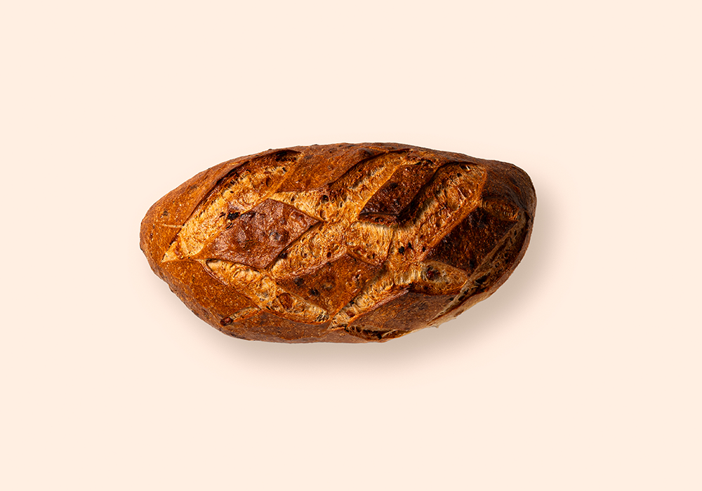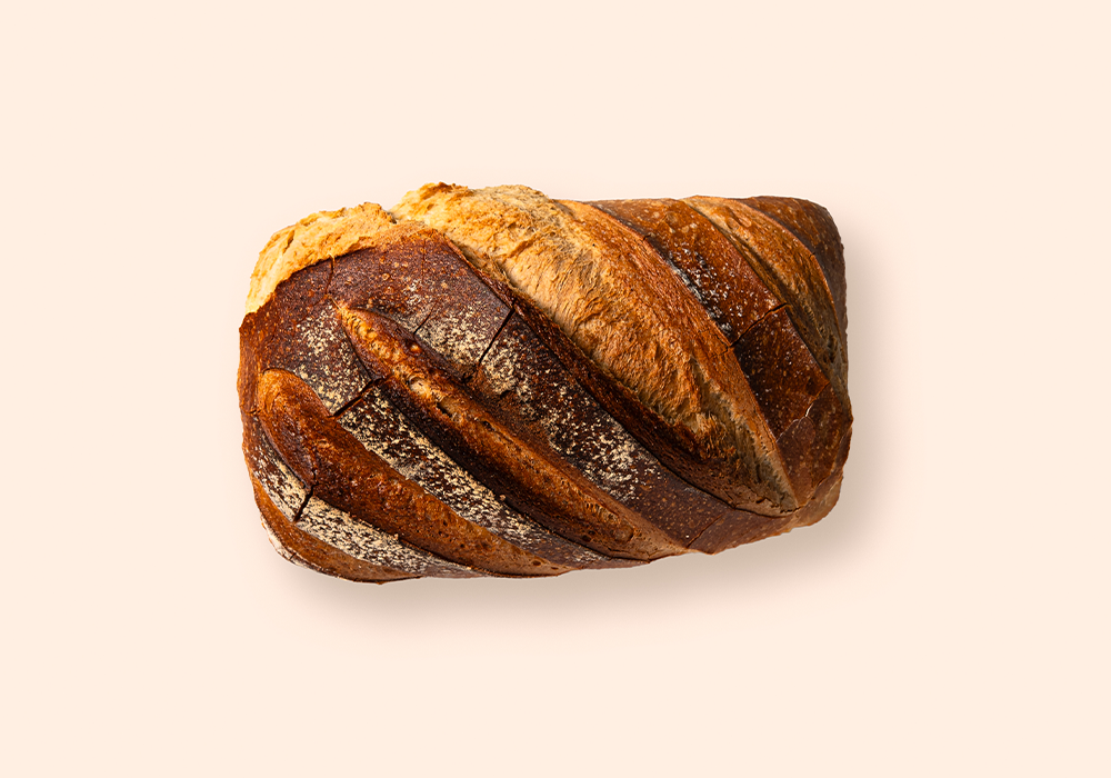 Pain demi-gris au levain, préparé avec un mélange de céréales sélectionnées.